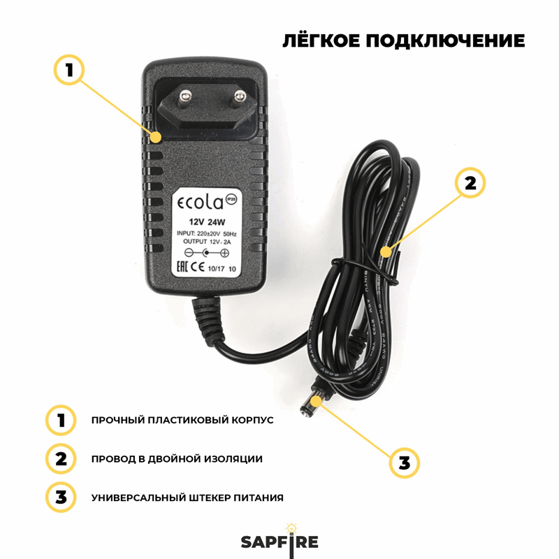 Ecola LED strip Power Adapter 24W 220V-12V адаптер питания для светодиодной ленты (на вилке)